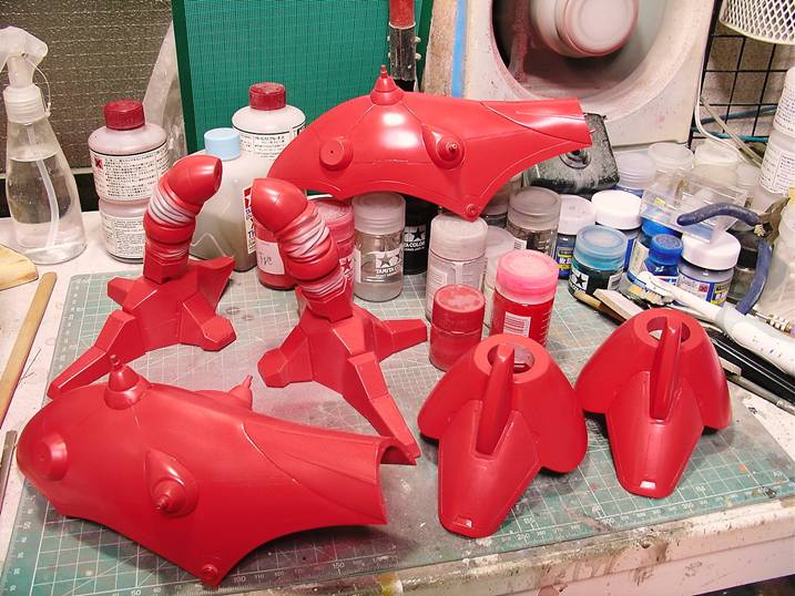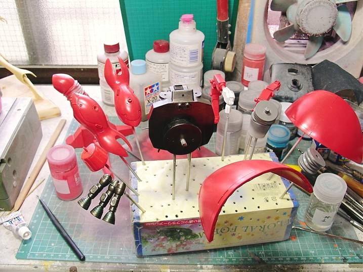 ボディの赤を調合しつつ、細かいパーツの塗装を始めました。