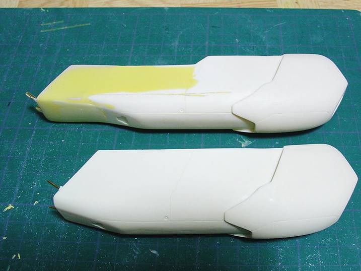 スジ彫りも彫り直す為にポリエステルパテでヒケ処理を兼ねて1回目のパテ下地を