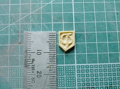 1番肝心なエンブレムの様な気がする胸部…プラ板を切り出した状態では湾曲した胸部に