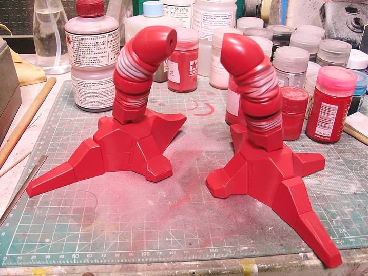 この様になります。プラパイプの部分まで赤く塗る予定なので、この様な感じで