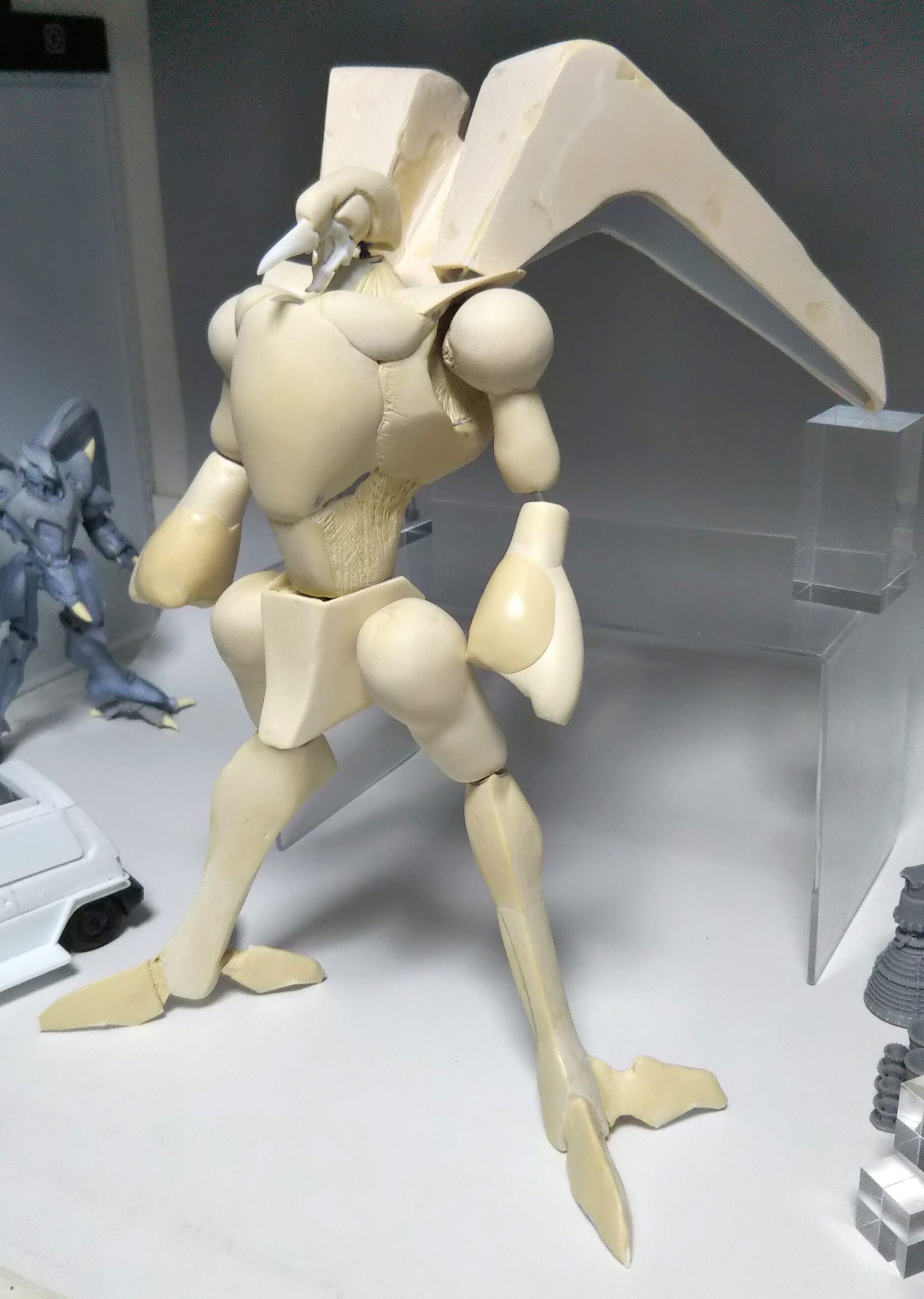 1/48 バストール (フルスクラッチ) 2023年5月8日 最終更新日時 : 2023年5月16日 kagerousiguma 数年前にTwitterで知り合った方の誕プレ用に制作したオーラバトラーです。当初はプラ板主体で制作していたんですが…時間の関係から軽量のエポパテに切り替えて制作、完成致しました。 Follow me! FacebooktwitterHatenaPocketCopy